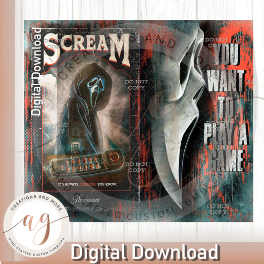 Scream Movie Sublimation 20oz Tumbler | PNG | Digital File | Digital Download