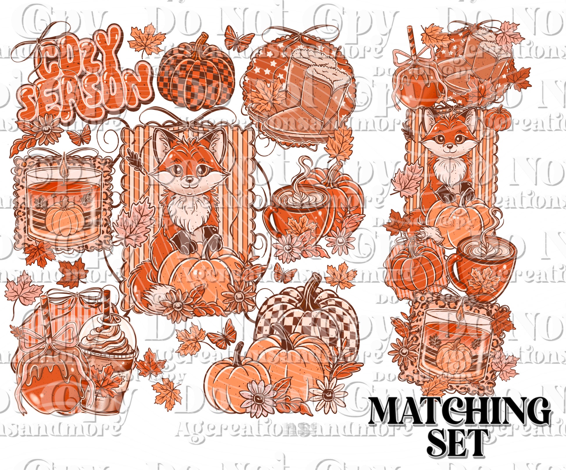 Cozy Season Fox set Digital Download PNG