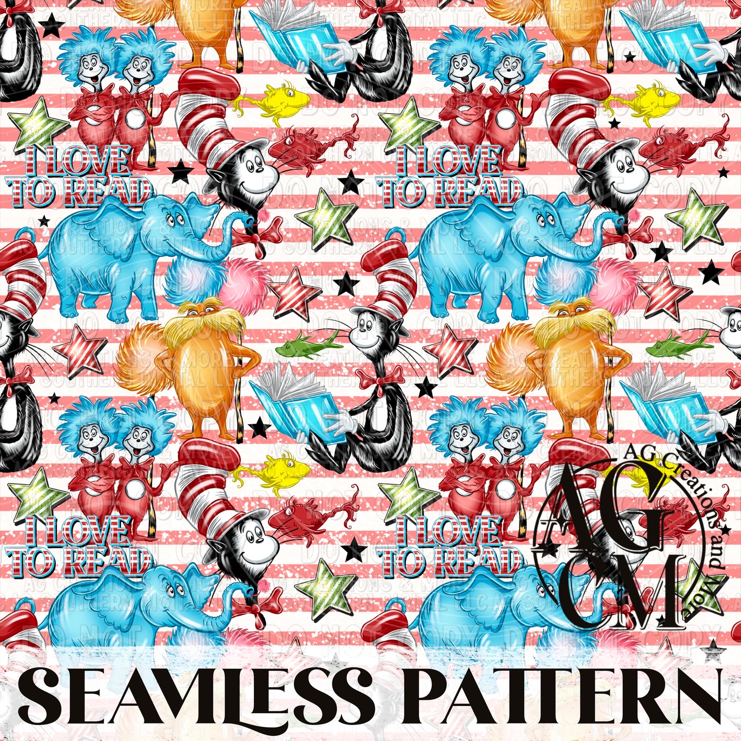 I Love To Read Seamless Pattern PNG