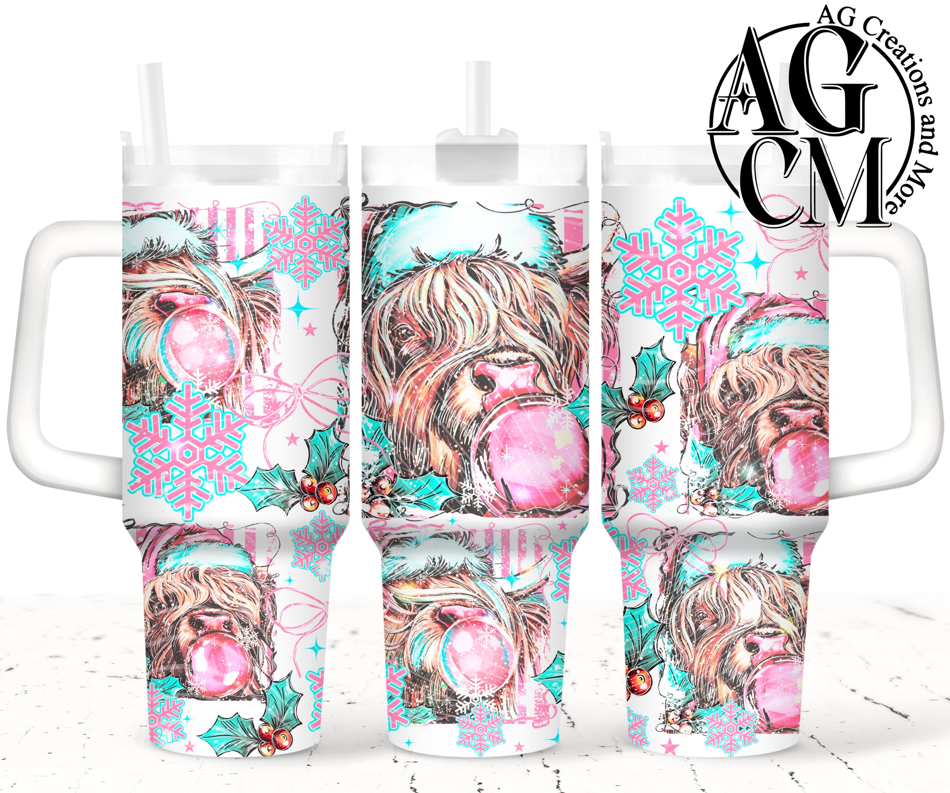 Pink Highland Cow Christmas 40oz Tumbler Digital Png