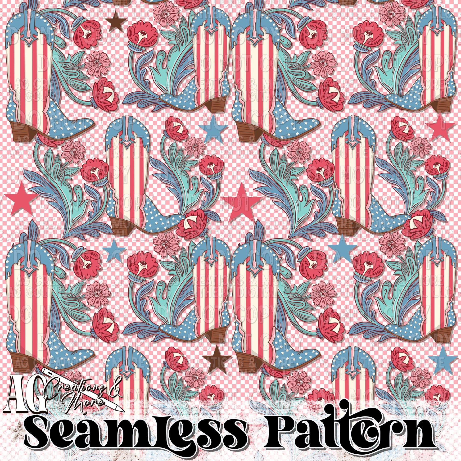 America floral boot Seamless Pattern
