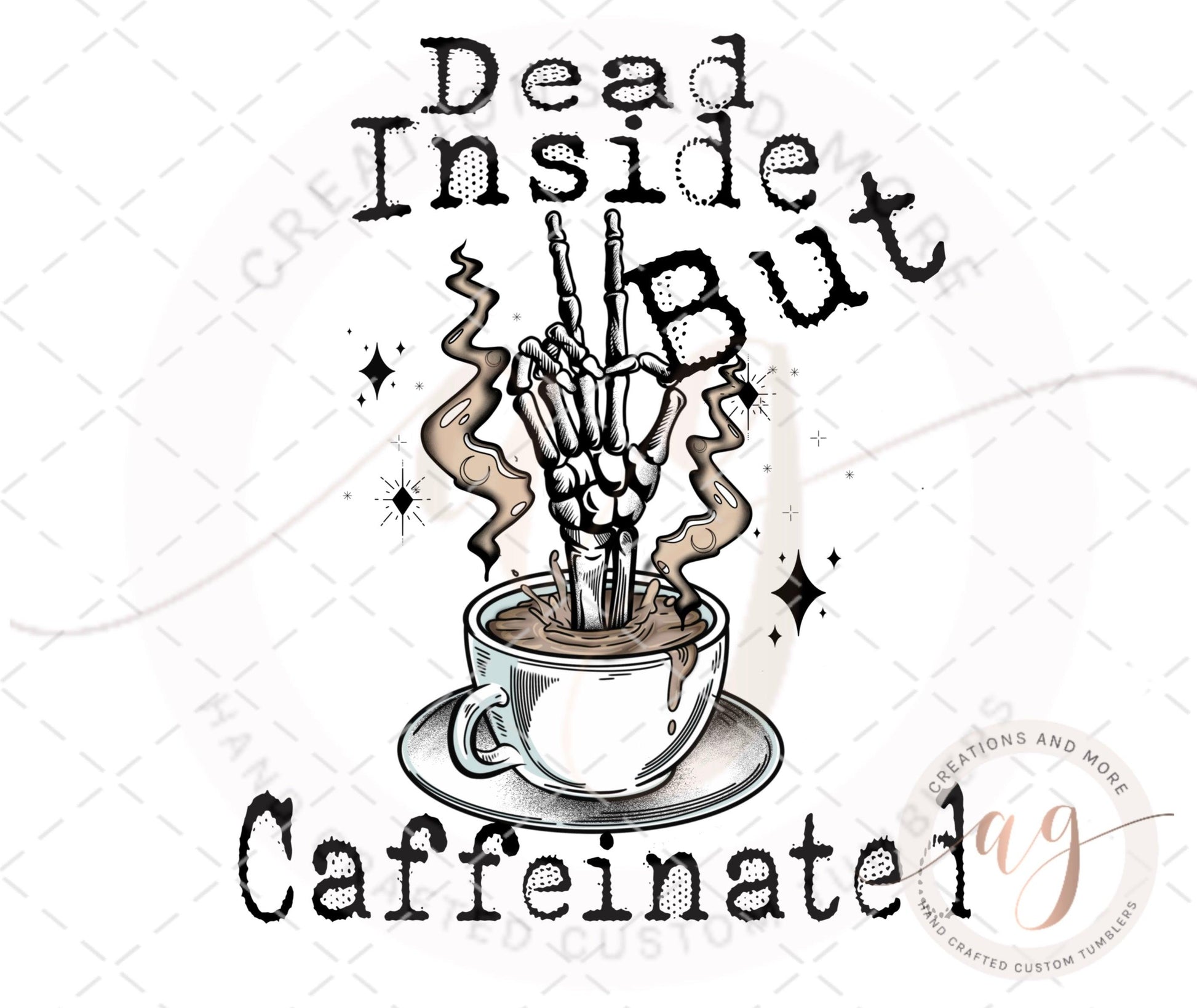 Skeleton Hand Coffee Dead Inside But Caffeinated PNG | Digital File | Digital Download | Sublimation | Transfer